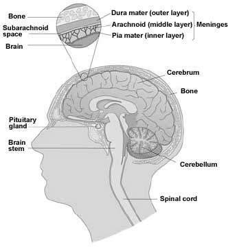 Also surrounding and protecting the brain and spinal cord are the meninges (the membranes that cover the brain and the spinal cord) and a fluid known as cerebrospinal fluid (CSF). There are three different layers making up the meninges; dura mater (outer layer), arachnoid mater (middle) and pia mater (inner).