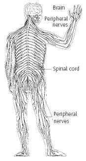 All the functions and senses of the body are controlled by the central nervous system (CNS). This system is made up of the brain, the spinal cord and a network of peripheral nerves that spread throughout the body from the spinal cord